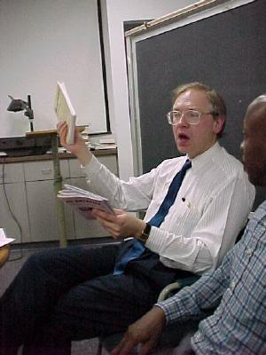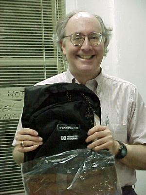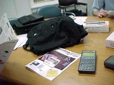 Eric Hafler shows off a new HP promo item - an embroidered book bag... High quality for not too much money. Contact Jim Lawson for details |
