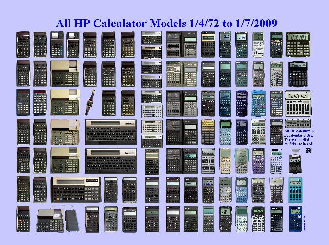(accompanied by images and introduction dates of every HP handheld calculator built since the HP35 in 1972)