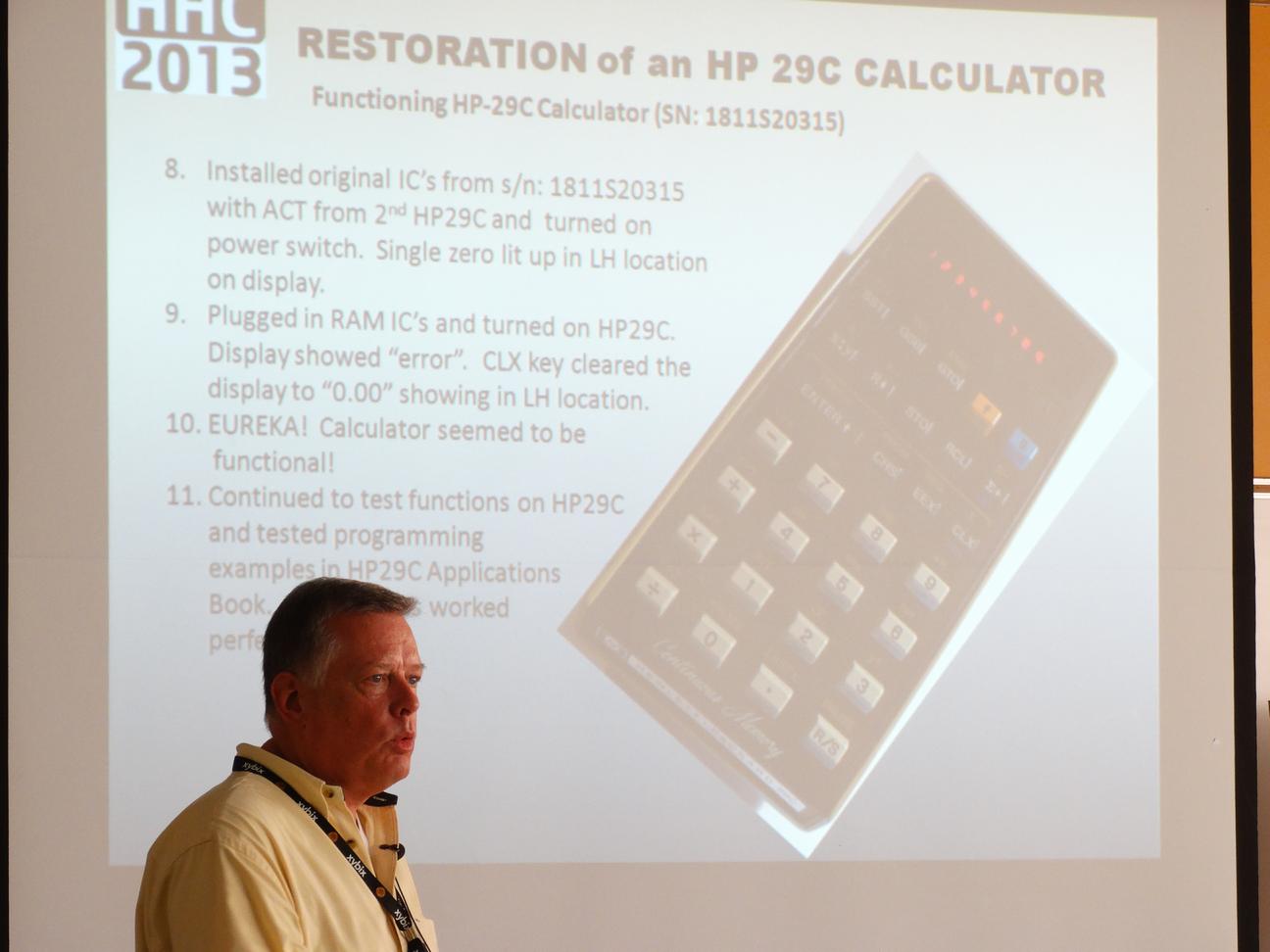1. Richard Nelson and group Opening Remarks and Attendee Introductions 2. Richard Nelson Peeking at Prime 3. Tim Wessman (HP) HP Prime Wireless Polls, Quizzes and More 4. Cyrille de Brebisson (HP) HP Prime Architecture 5. Cyrille & Tim HP Prime Q & A 6. Jim Donnelly Visualizing Data: A Journey From Calculator Development to the Machine Shop 7. Felix Gross Update: Where Can You Find Calculator Applications? 8. Jim Johnson HP-29C Calculator Diagnosis and Restoration 9. Namir Shammas My Favorite HP Prime Functions 10. Eric Smith Still Larger Scaled Reptiles of the Nordic Countries (DIY Calculator Update) 11. Jeremy Smith Platonic Road Dots 12. Richard Nelson Are Calculator Newsletters & Conferences Obsolete? 13. Gene Wright The Early HP Omnibook Laptops / Show and Tell 14. Geoff Quickfall HPs at Work in Aviation 15. Wlodek Mier-Jedrzejowicz A Guide to HP Handheld Calculators and Computers 16. HP Panel Ruth Petterson, Jason Smith, Cyrille de Brebisson, Tim Wessman 17. David Ramsey The HP-85 Family 18. Jake Schwartz & Jackie Woldering Incorporating Readable HP-41 PPC Journal Programs & Barcode into the PPC DVD 19. Chuck McCord Tales from HP Corvallis 20. Book Authors' Panel Q & A for Aspiring Authors 21. Programming Contest Results & Door Prizes 22. Users' Forum & Conference Conclusion The full (15-hour +) conference, recorded on 6 DVDs, is available for $20.00 or on a singleFormat DVD for $10.00 (including shipping anywhere).