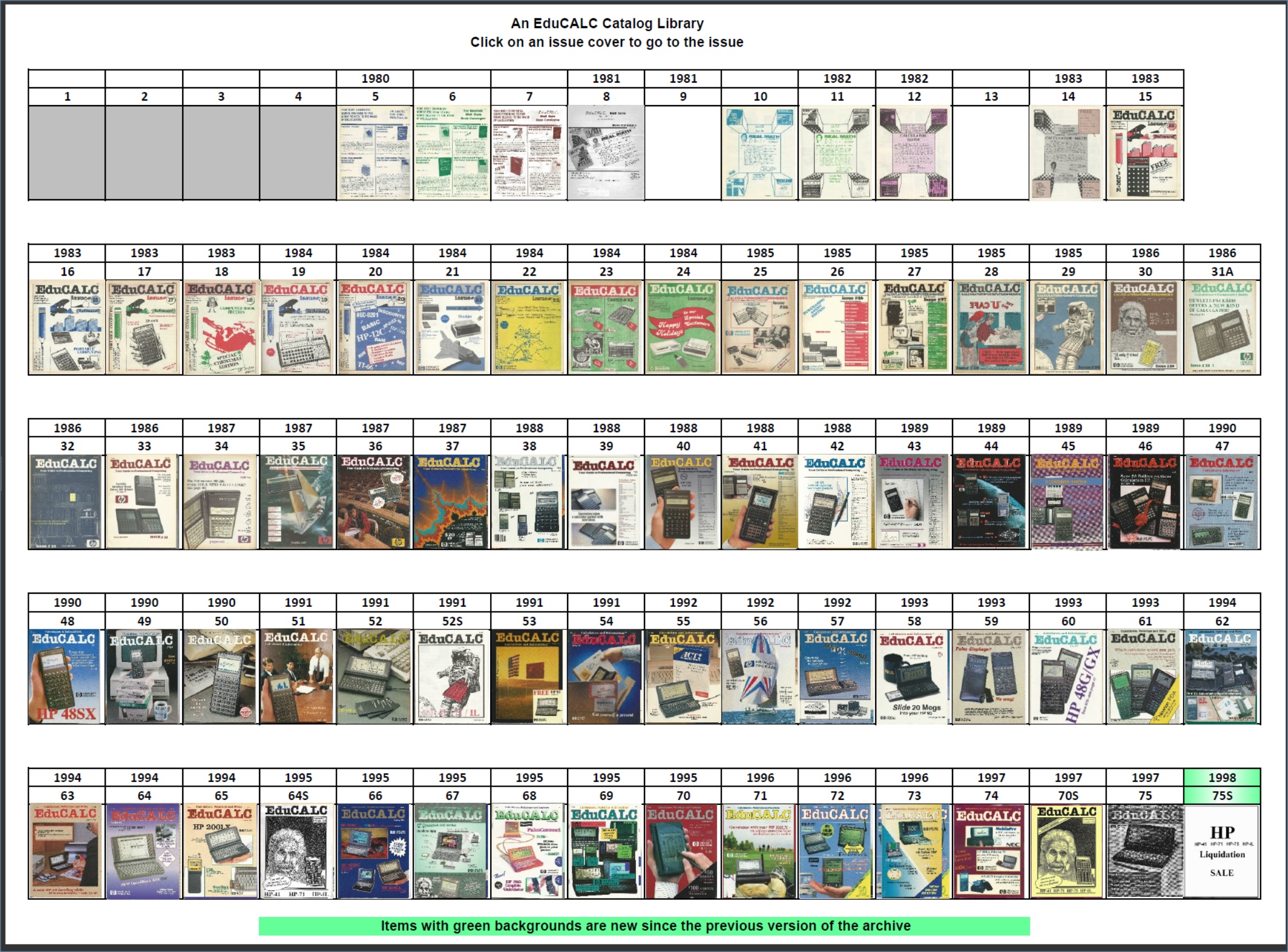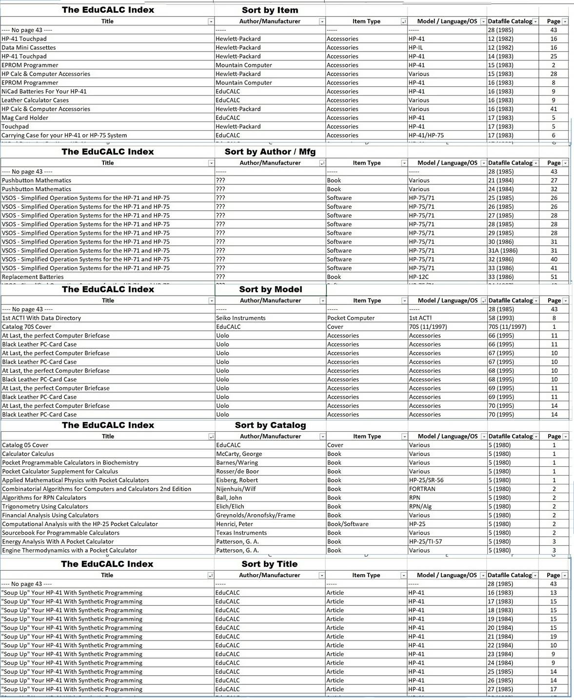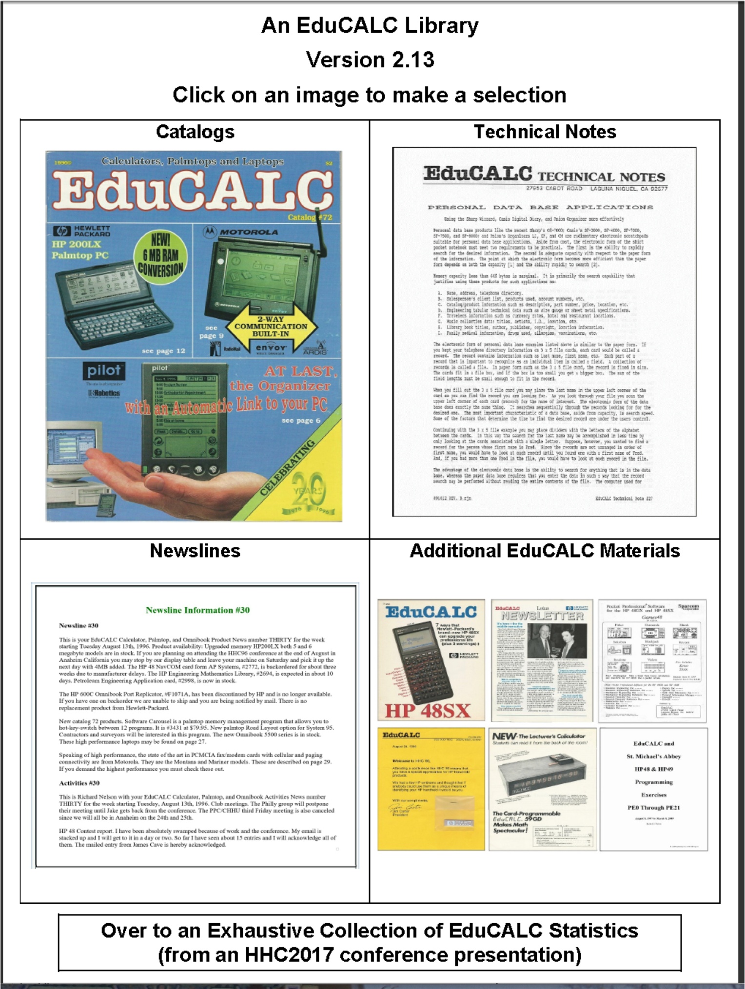 An EduCALC Catalog Library: Almost all EduCALC catalog issues, Catalog Indexes, Technical Notes, Newsline transcripts and other materials totaling 6,499 pages