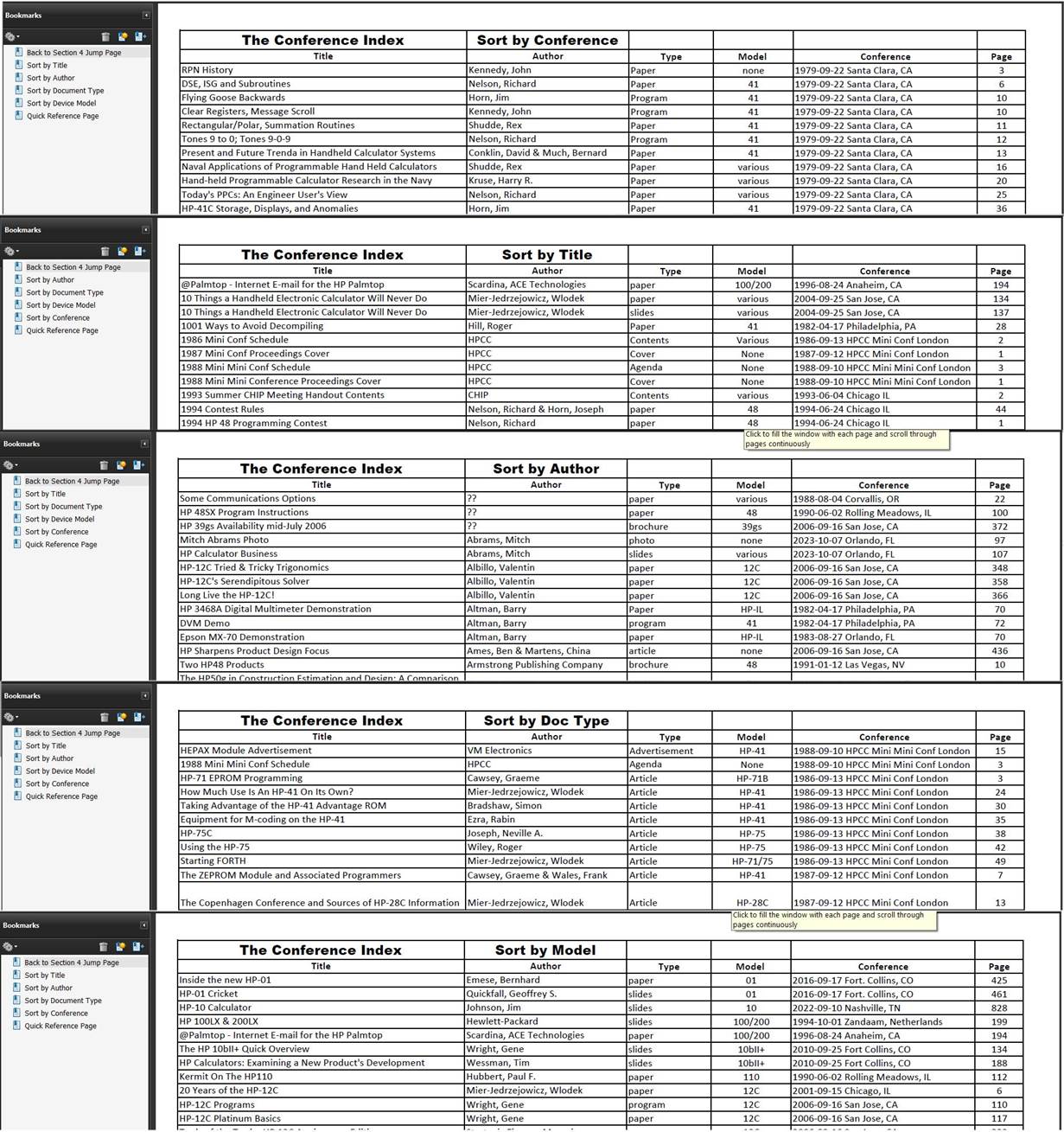 o Including The Conference Index: An index of all 1651 entries in all 71 conferences indexed five ways (by conference, item title, author, document type and calculator model)