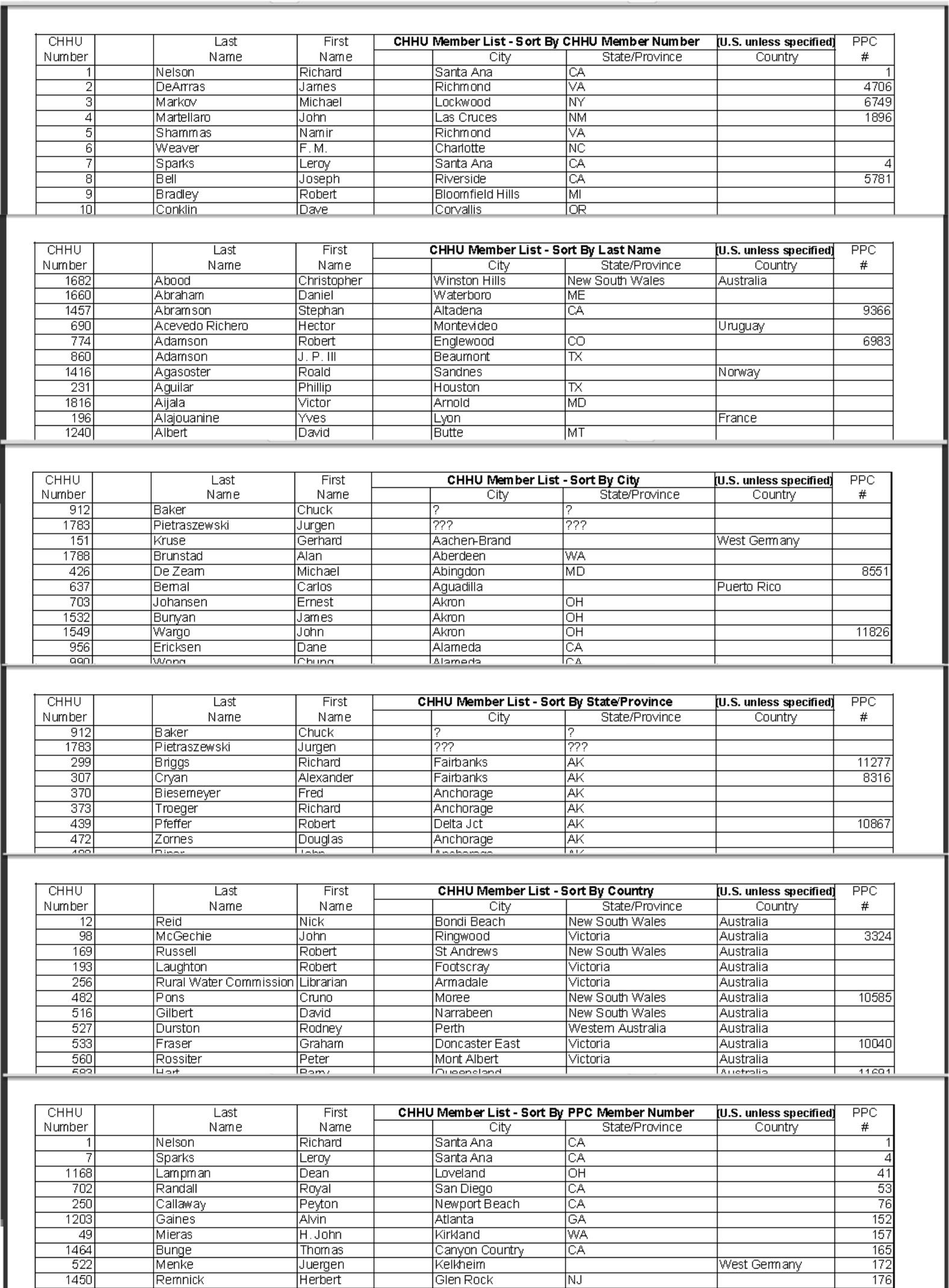 (Updated the Indexes with sort by CHHU Member No., Last Name, City, State, Country