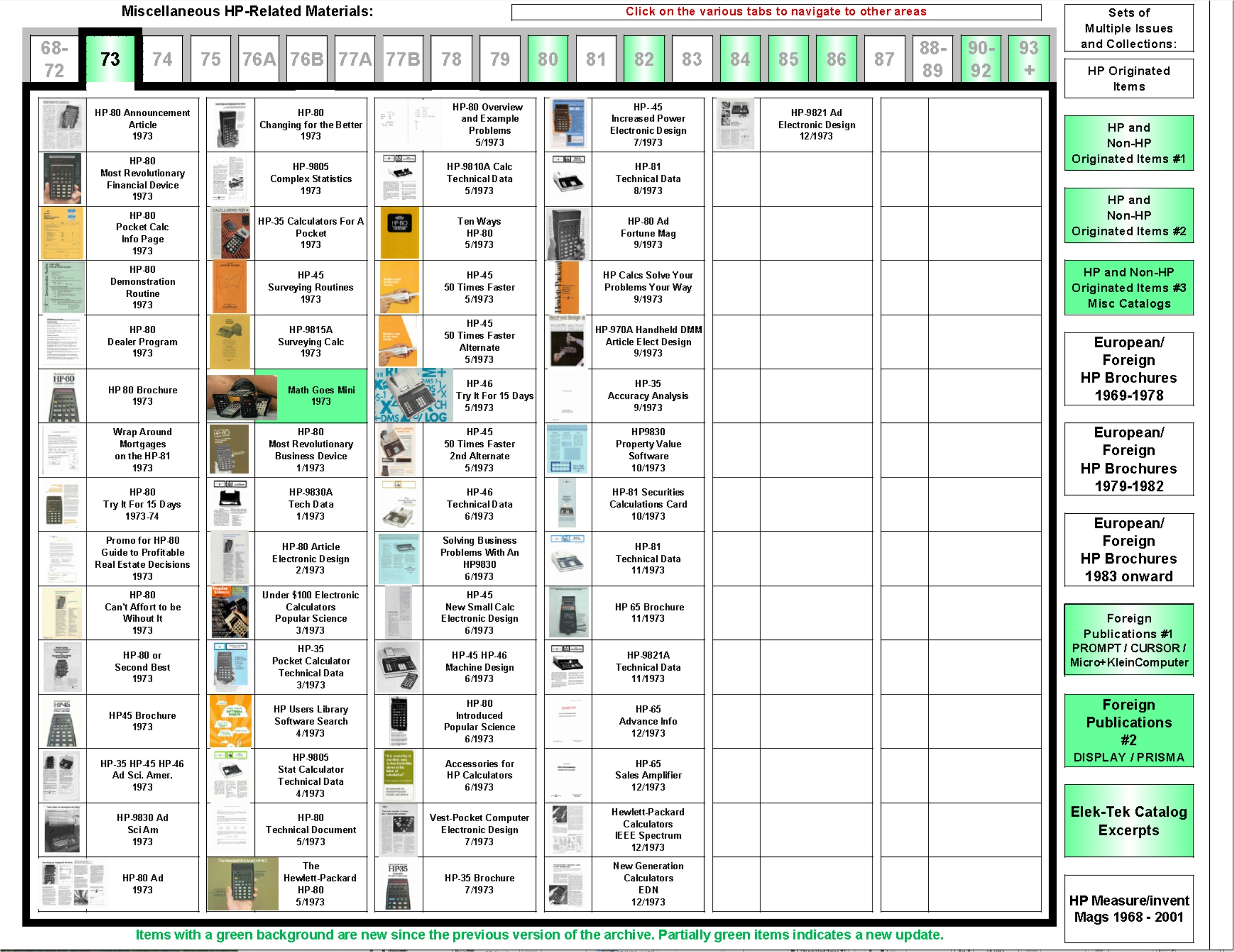 HP65 Users' News / HP65 Key Note / HP Key Notes / HP Digest / HP Journal Articles