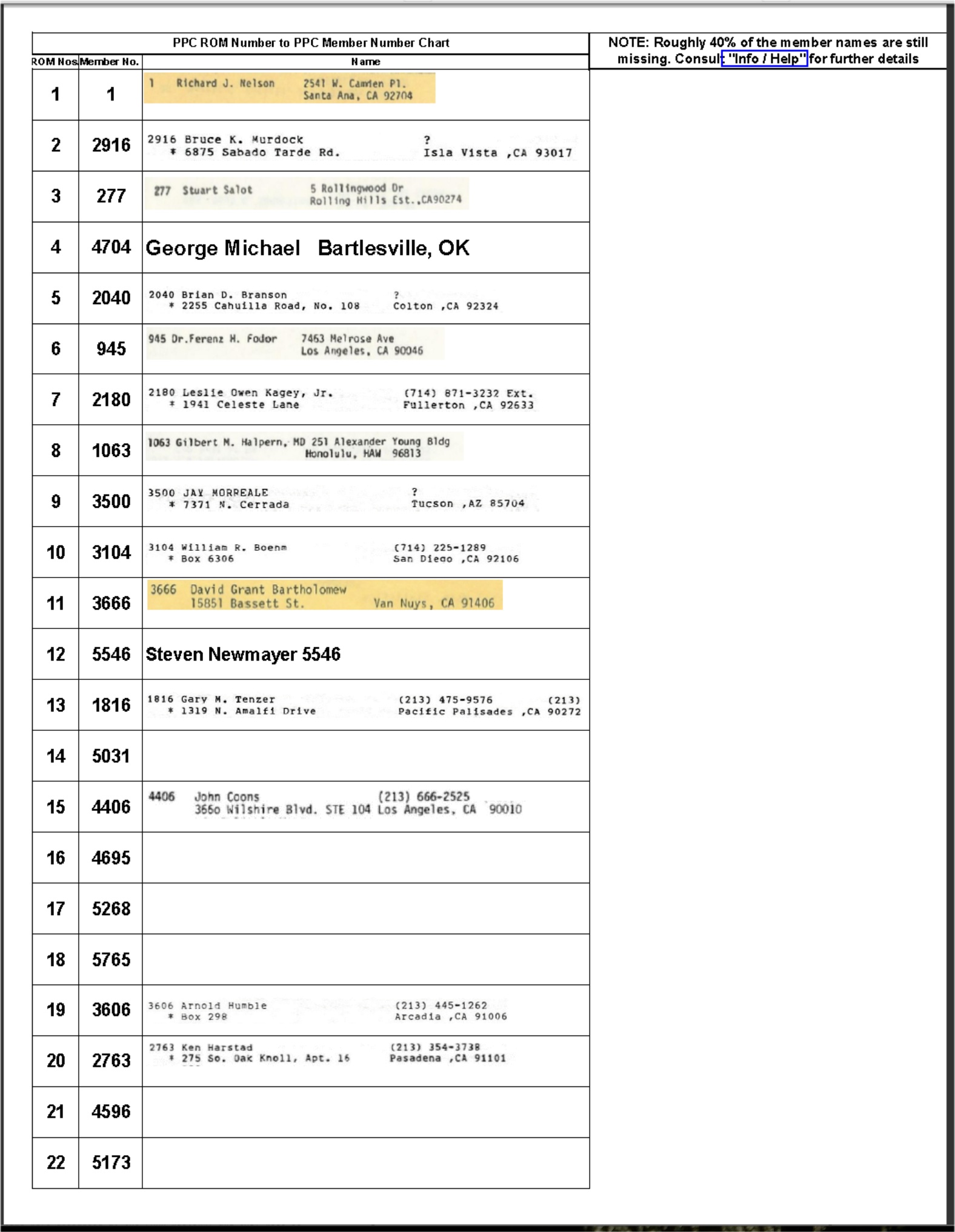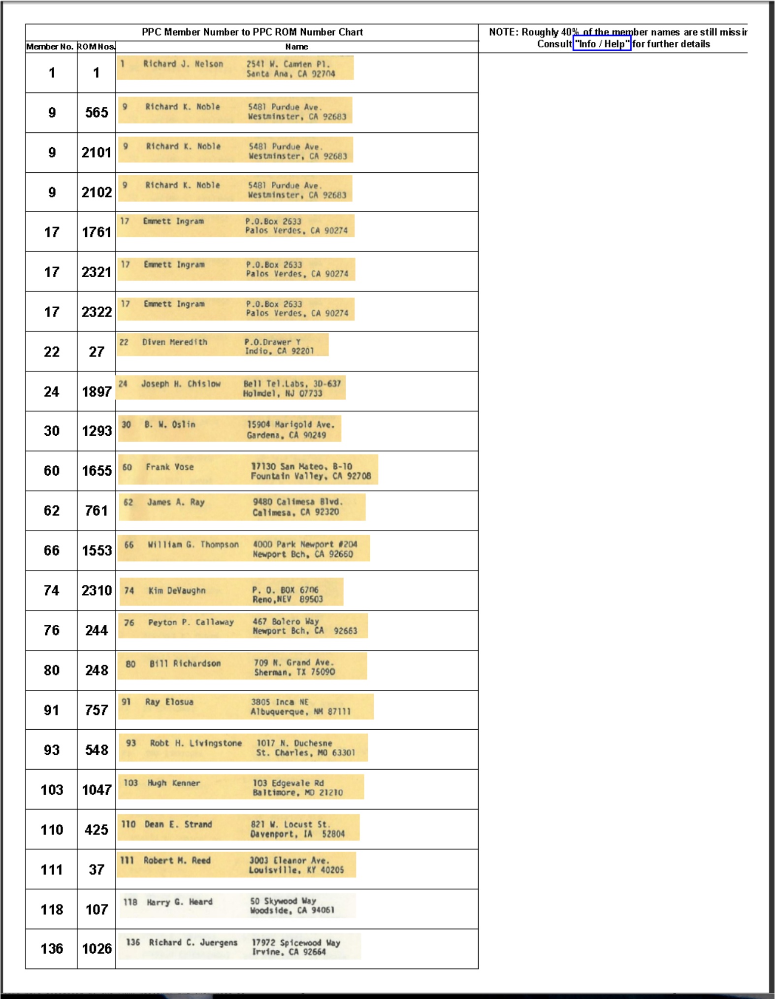 Updated PPC ROM Order Name Lists and CHHU Member Lists: