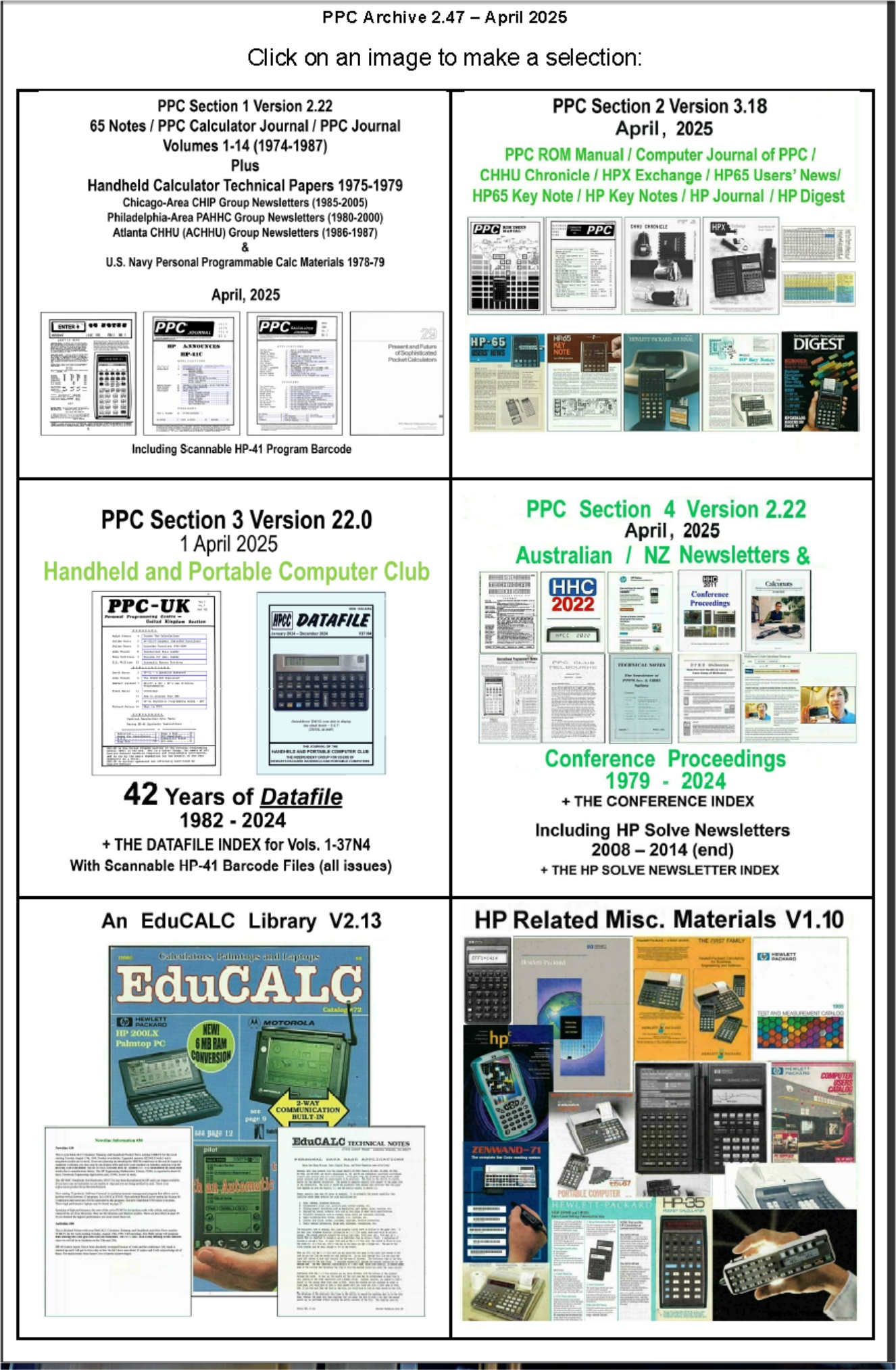 This Archive, combining all 4 previous PPC sections (plus the EduCALC